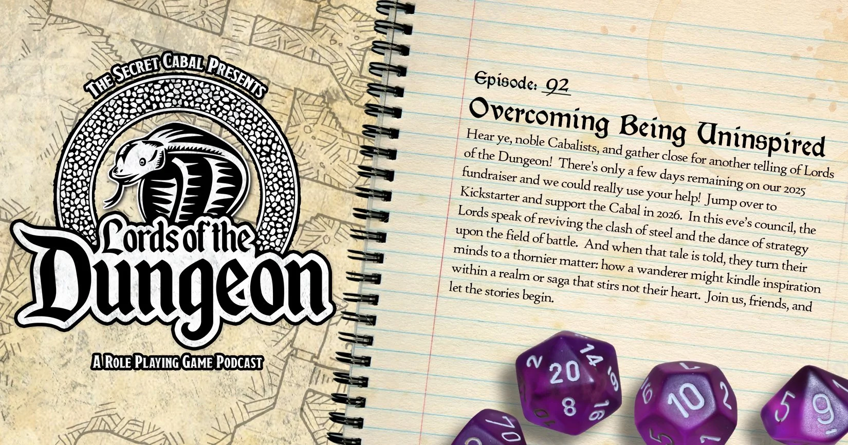 Hear ye, noble Cabalists, and gather close for another telling of Lords of the Dungeon! There's only a few days remaining on our 2025 fundraiser and we could really use your help! Jump over to Kickstarter and support the Cabal in 2026. In this eve’s council, the Lords speak of reviving the clash of steel and the dance of strategy upon the field of battle. And when that tale is told, they turn their minds to a thornier matter: how a wanderer might kindle inspiration within a realm or saga that stirs not their heart. Join us, friends, and let the stories begin. Support the Cabal on Kickstarter now! https://www.thesecretcabal.com/kickstarter